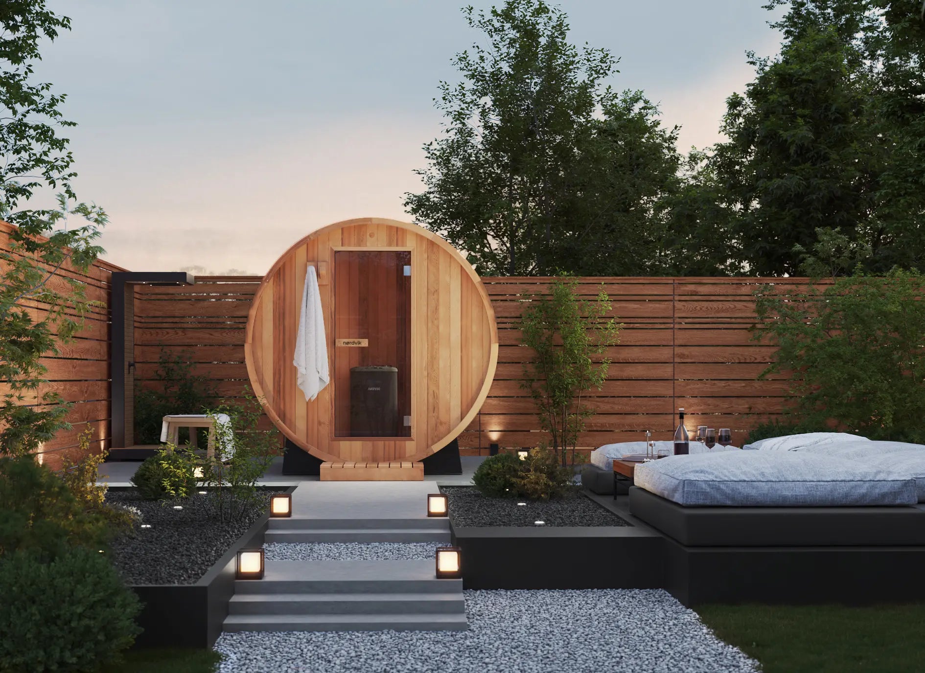 Embrace traditional sauna culture with the Nordvik 'ClassicRound' – a masterfully crafted 6-person barrel sauna that marries classic Finnish design with modern luxury for an authentic wellness experience.