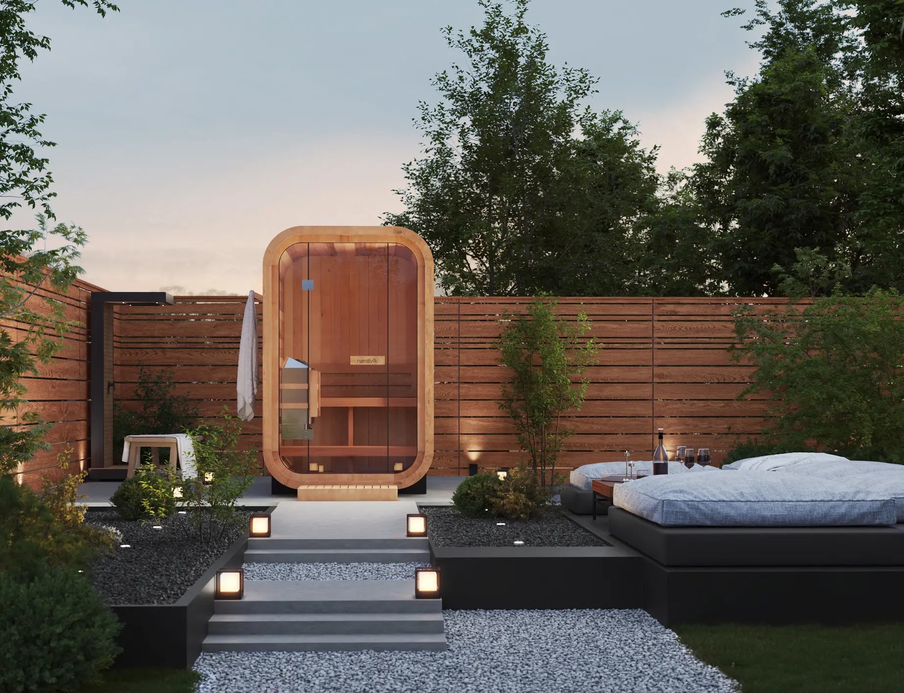 Transform any space into your personal wellness sanctuary with the Nordvik CozyCube, a compact eco-friendly 2-person mini sauna designed for ultimate relaxation.